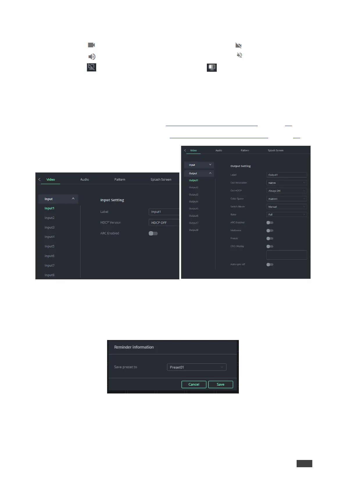 To adjust input port settings (see Configuring Video Input Settings on Page 30).
