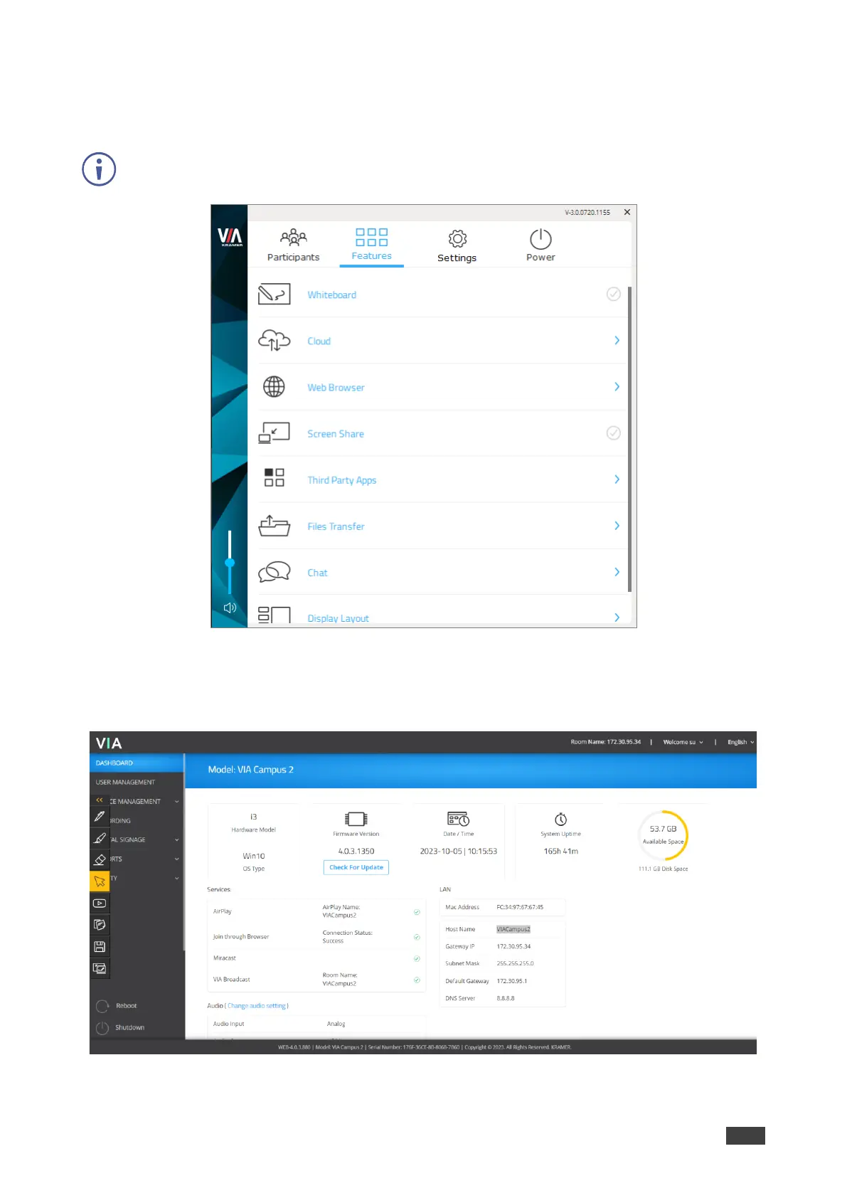 • Gateway Dashboard – VIA Campus2/ VIA Campus2PLUS interface opened from the