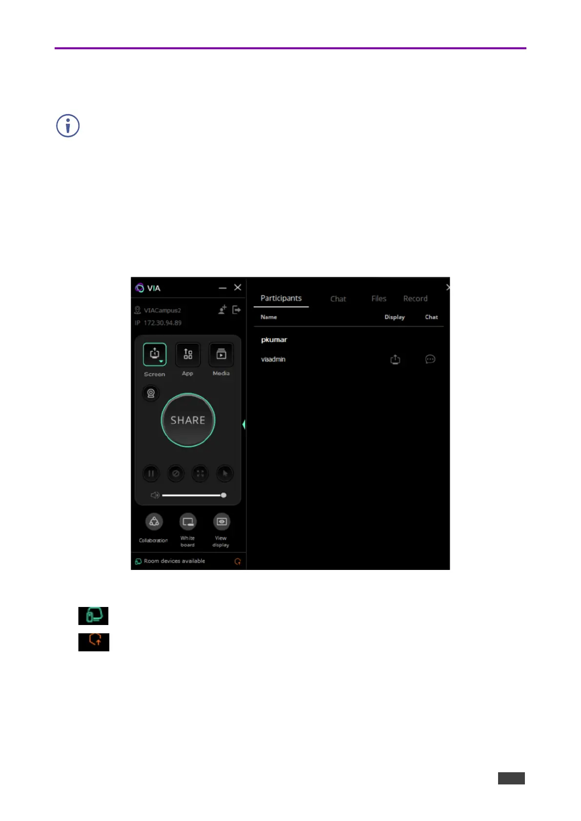 • VIA Meeting – A session where one or more users are logged into your VIA unit using