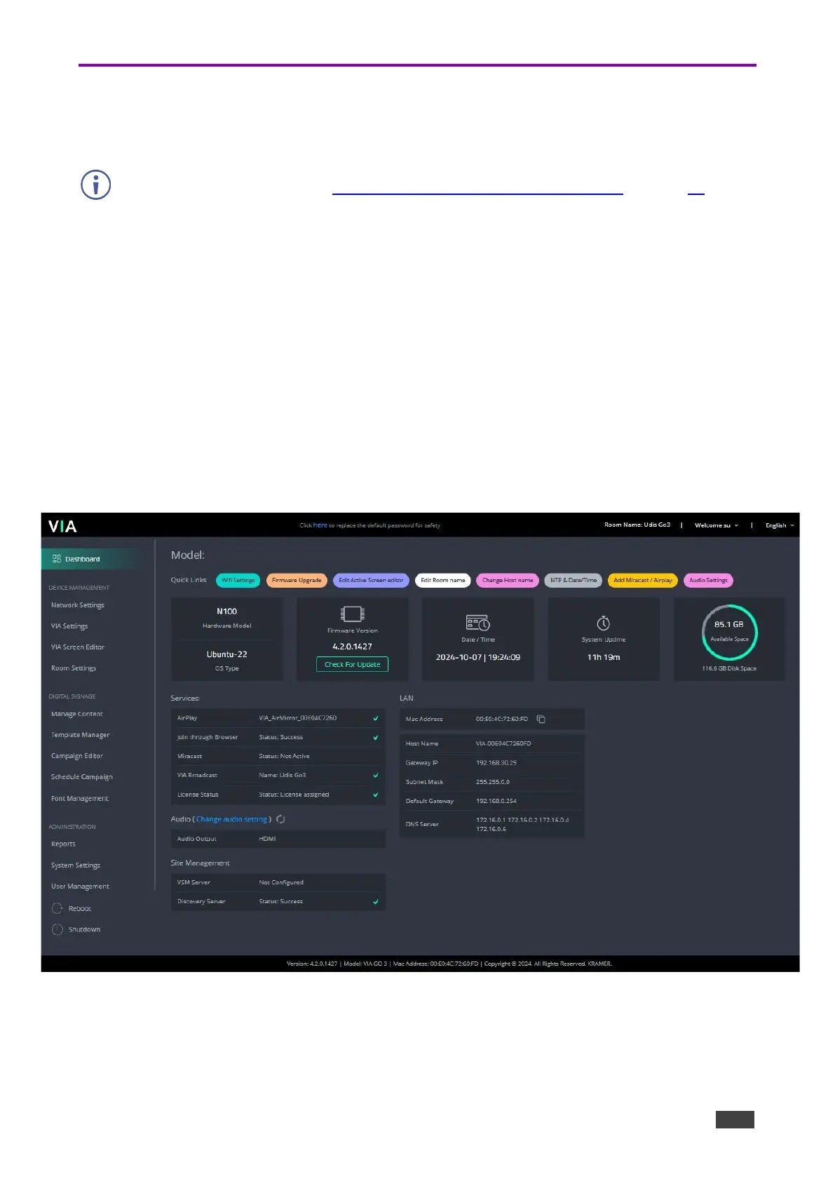 • Site Management – If VSM (VIA Site Management) is active and controlling device