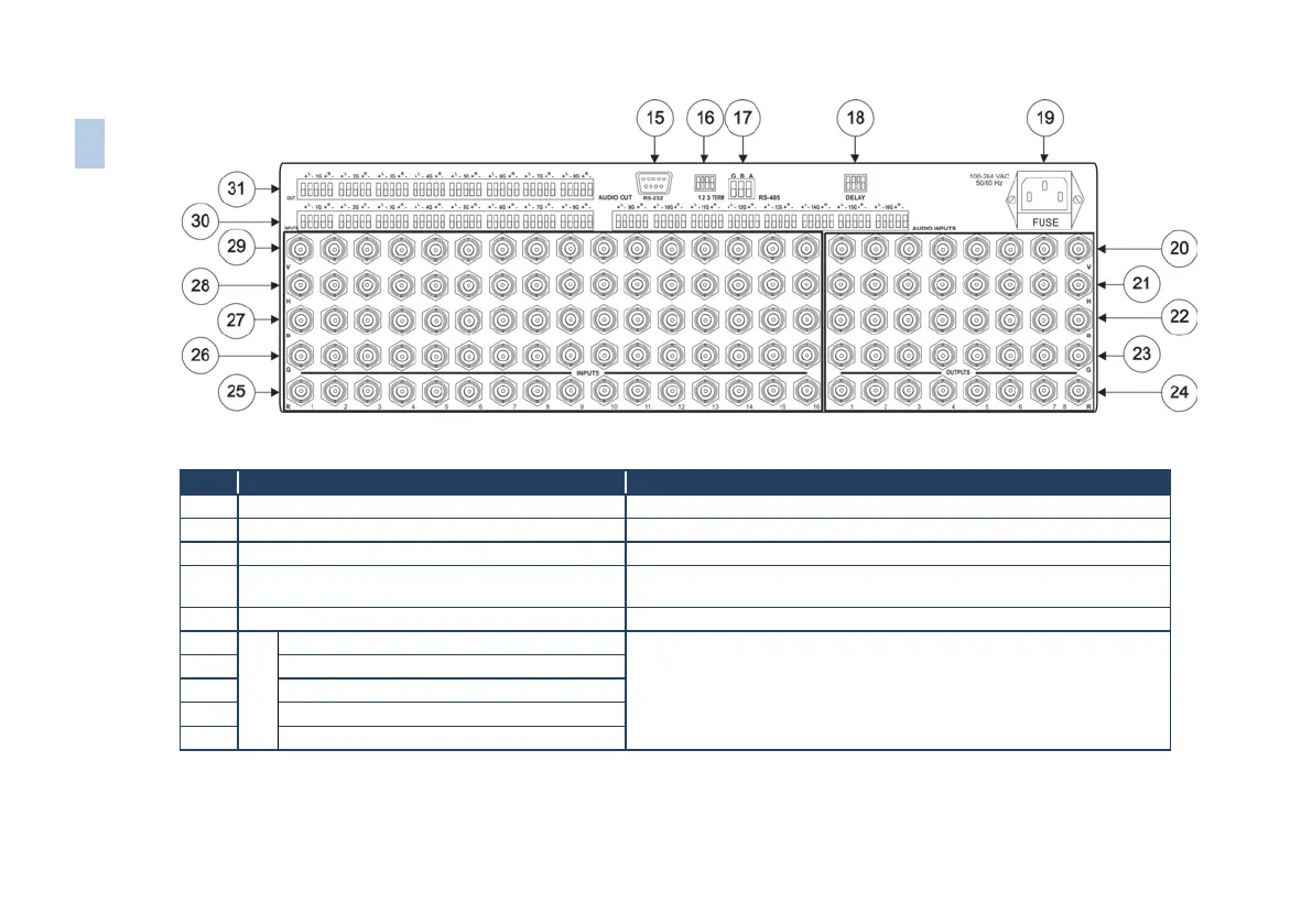 Figure 2: VP-1608 16x8 RGBHV/Balanced Audio Matrix Rear Panel