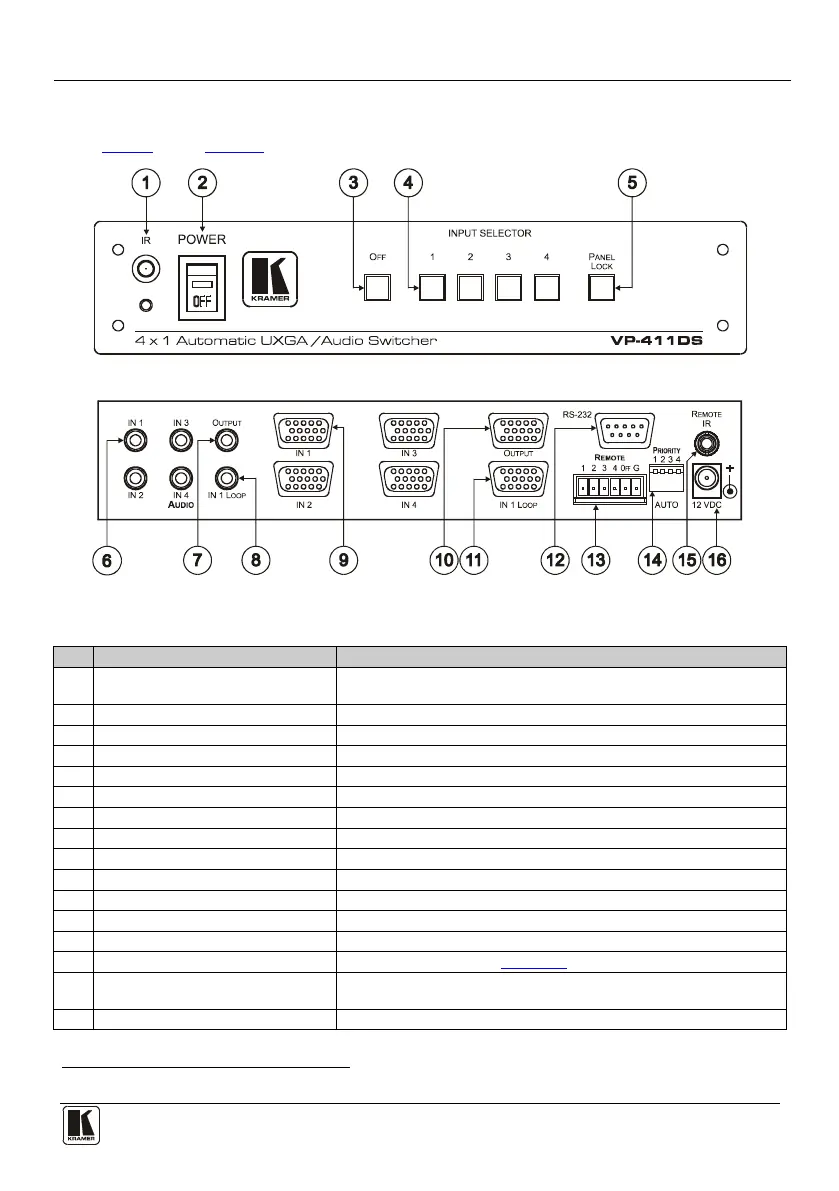 Table 1: VP-411DS 4x1 Automatic UXGA / Audio Switcher Topside Features