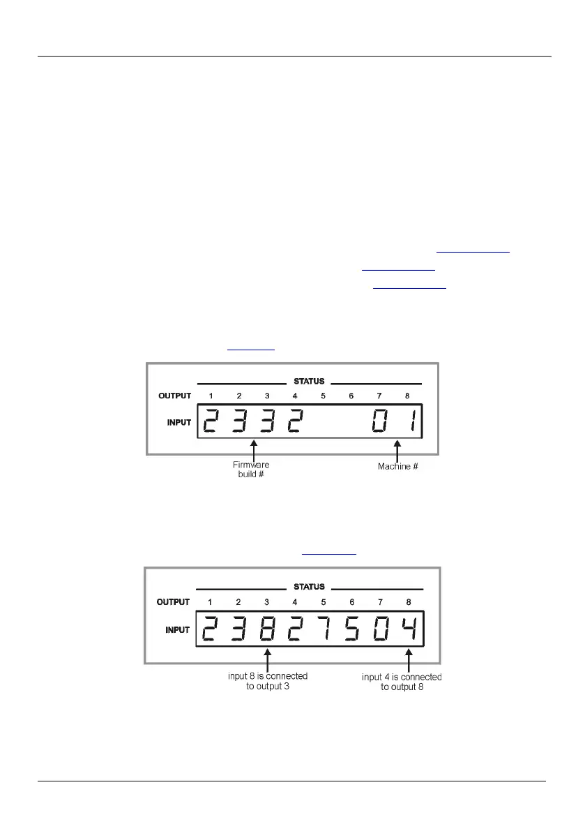 During normal operation, the STATUS display shows which inputs are switched to