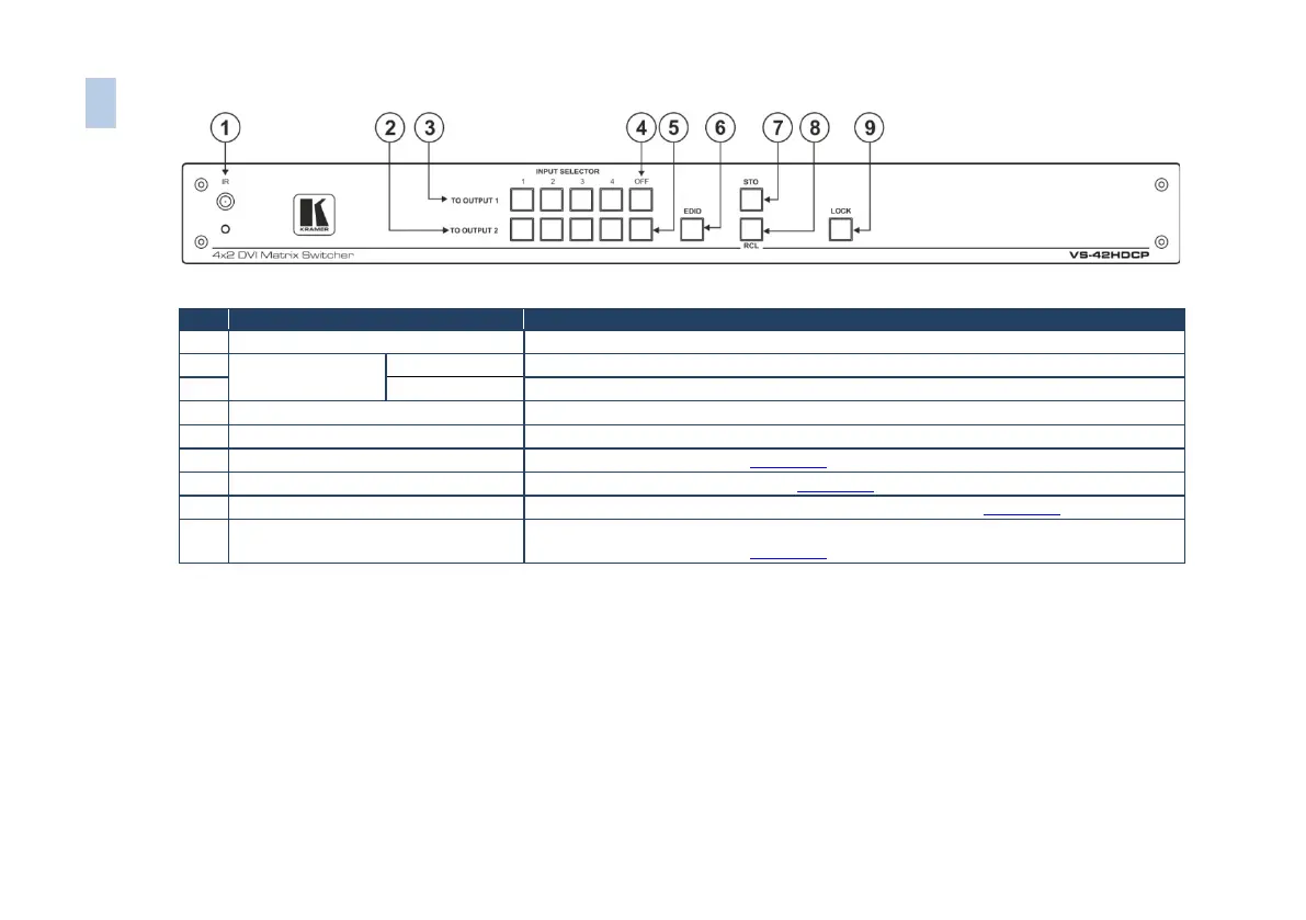 Figure 1: VS-42HDCP 4x2 DVI Matrix Switcher Front Panel