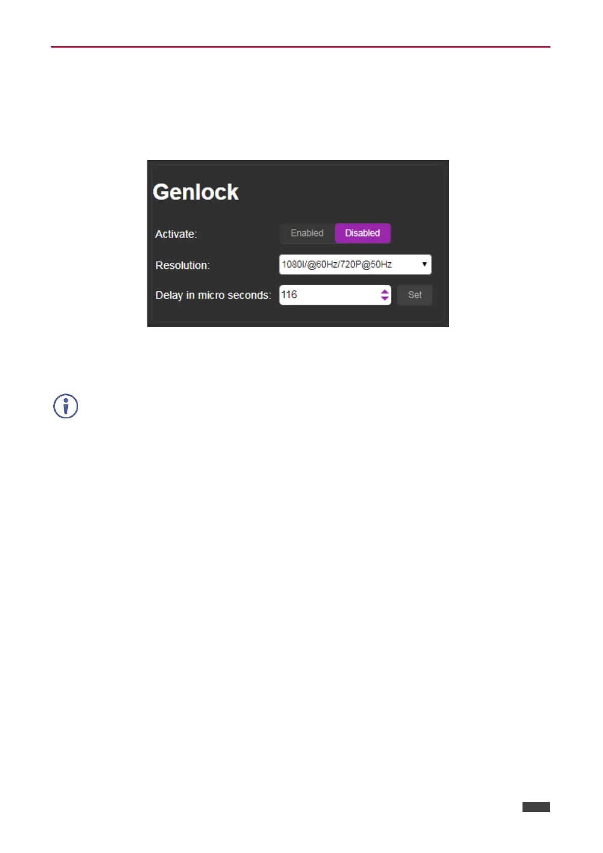 1. In the Navigation pane, click Genlock. The Genlock page appears.
