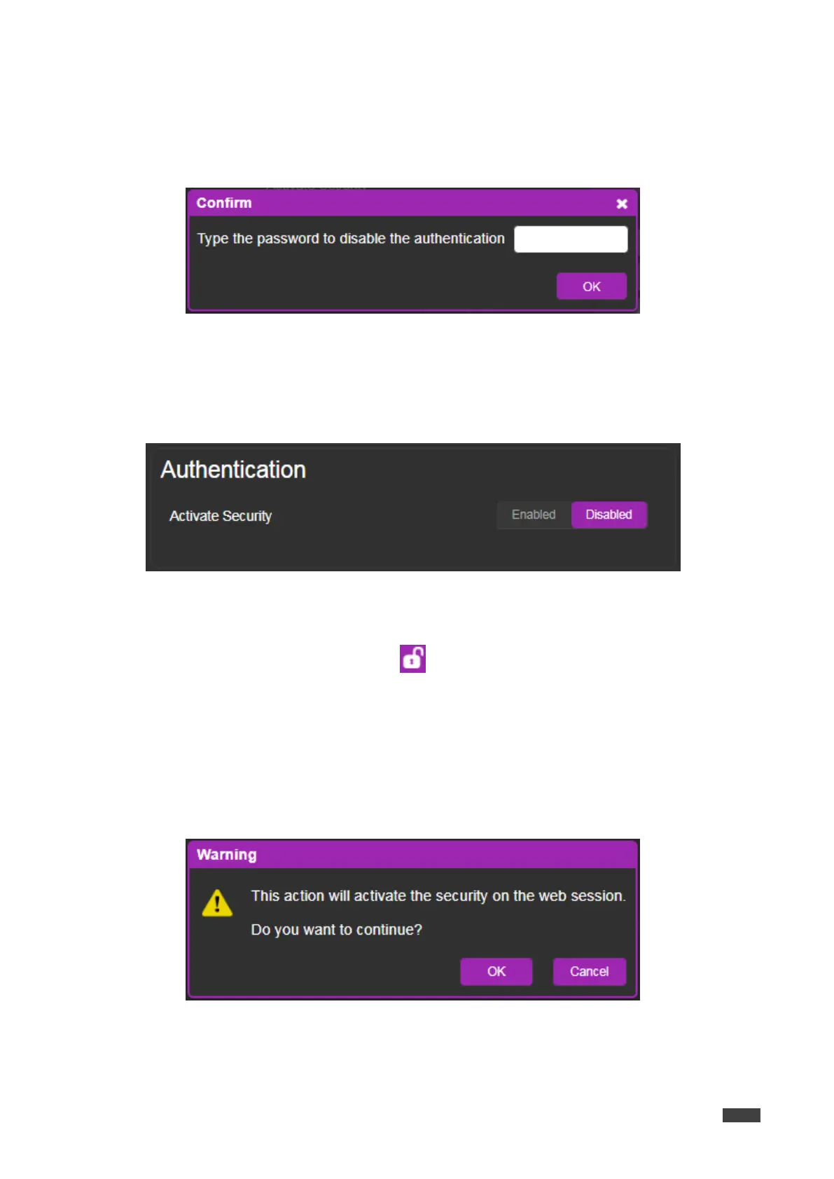 Figure 21: Authentication Page – Activating the Security