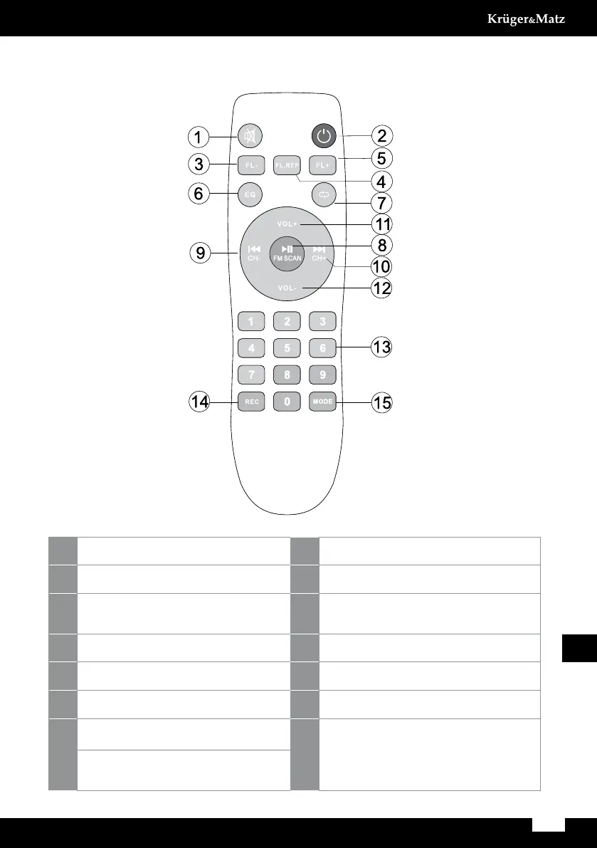 1 Przycisk MUTE: wł./wył. dźwięk 9 Poprzedni utwór/ kanał FM