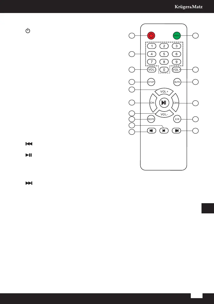 15. : Naciśnij w trybie USB/karty SD/ Bluetooth,