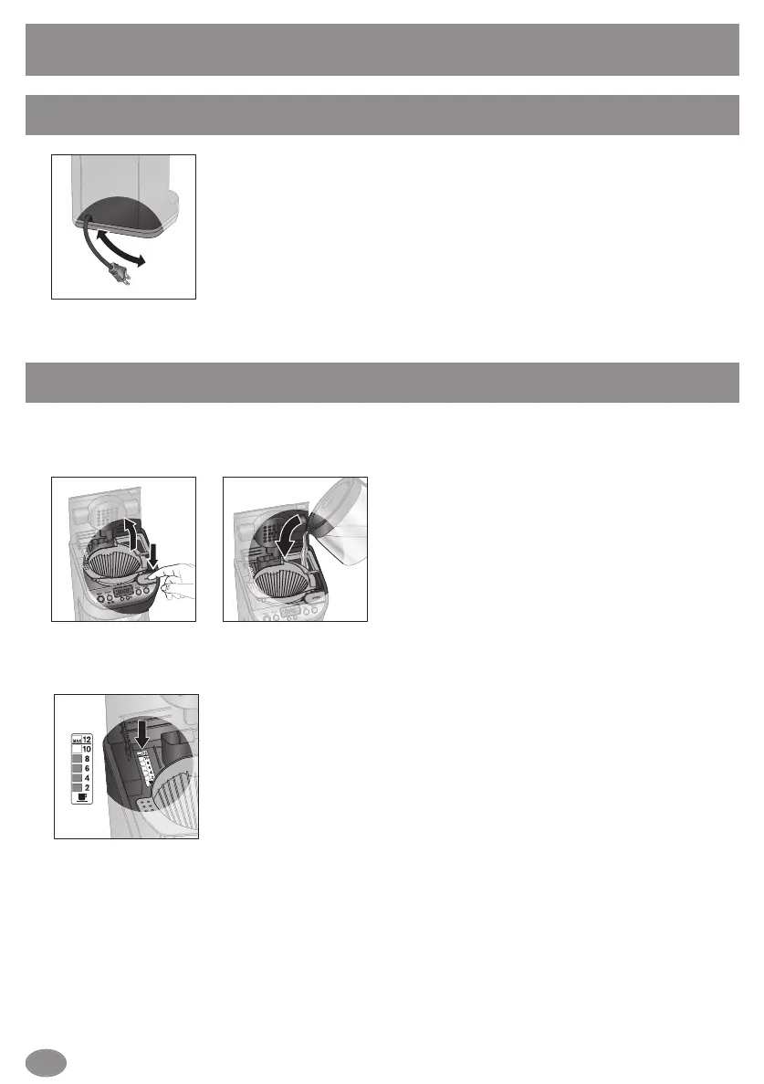 Unused cord can be stored inside the coffee maker (d). To insert the unused cord,