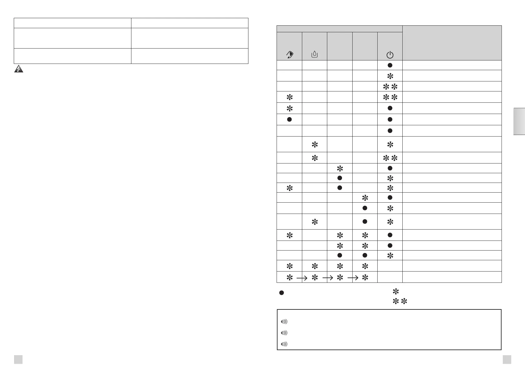 1 segnale acustico quando si preme su ON/OFF: messa sotto tensione dell'apparecchio attivata.