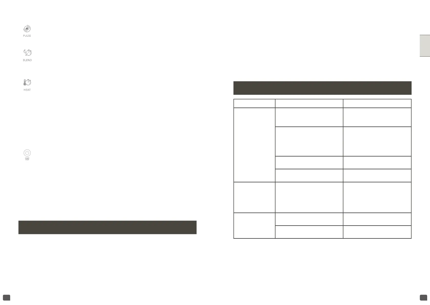 • Pulse: Press the pulse button to let the appliance run for only a few seconds at