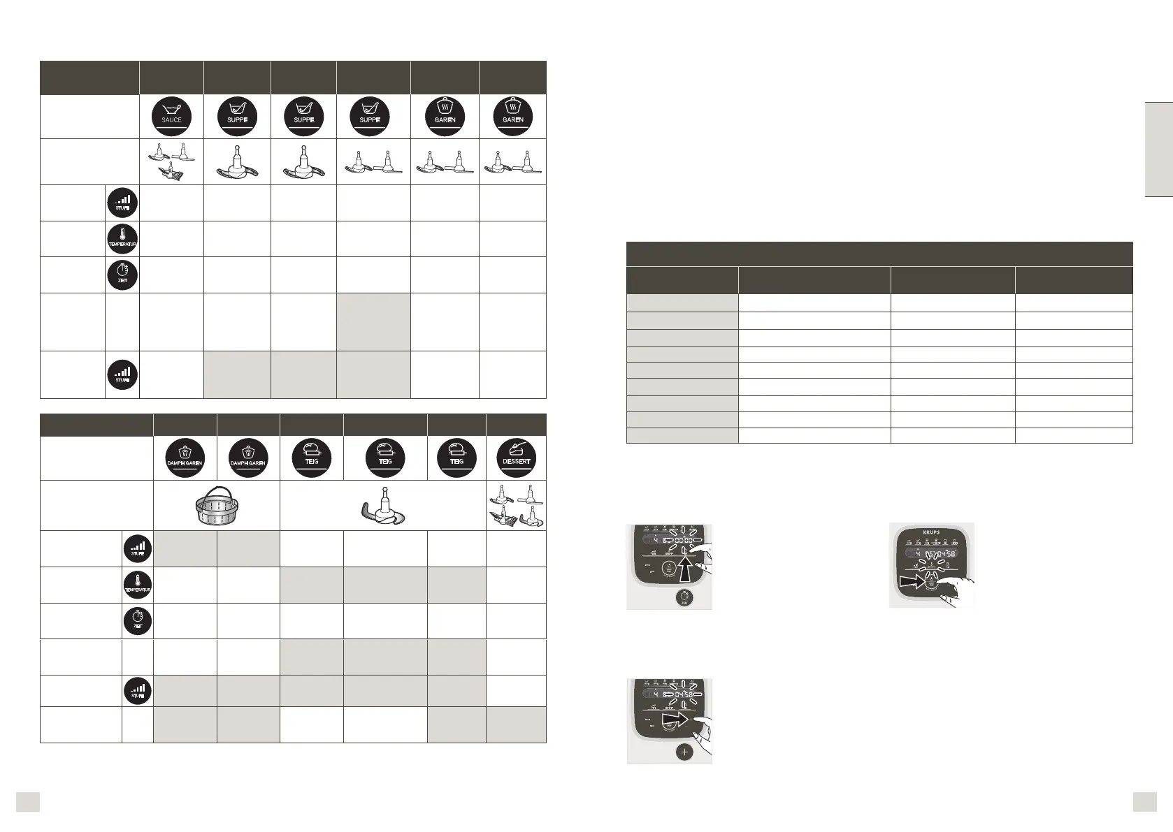 le temps de cuisson selon la quantité et le type d’ingrédients : voir tableau ci-dessous.