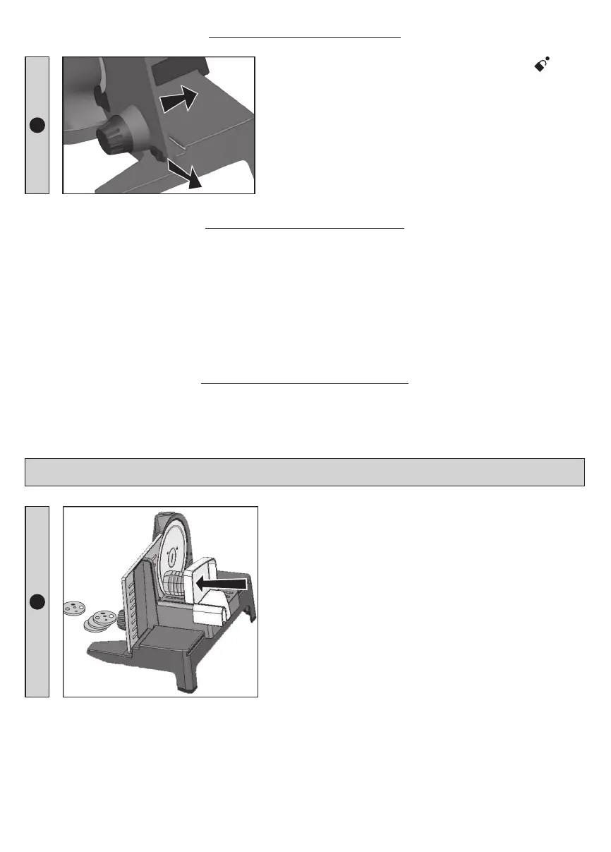– Plaats het te snijden product op de slede (D) en houd het tegen