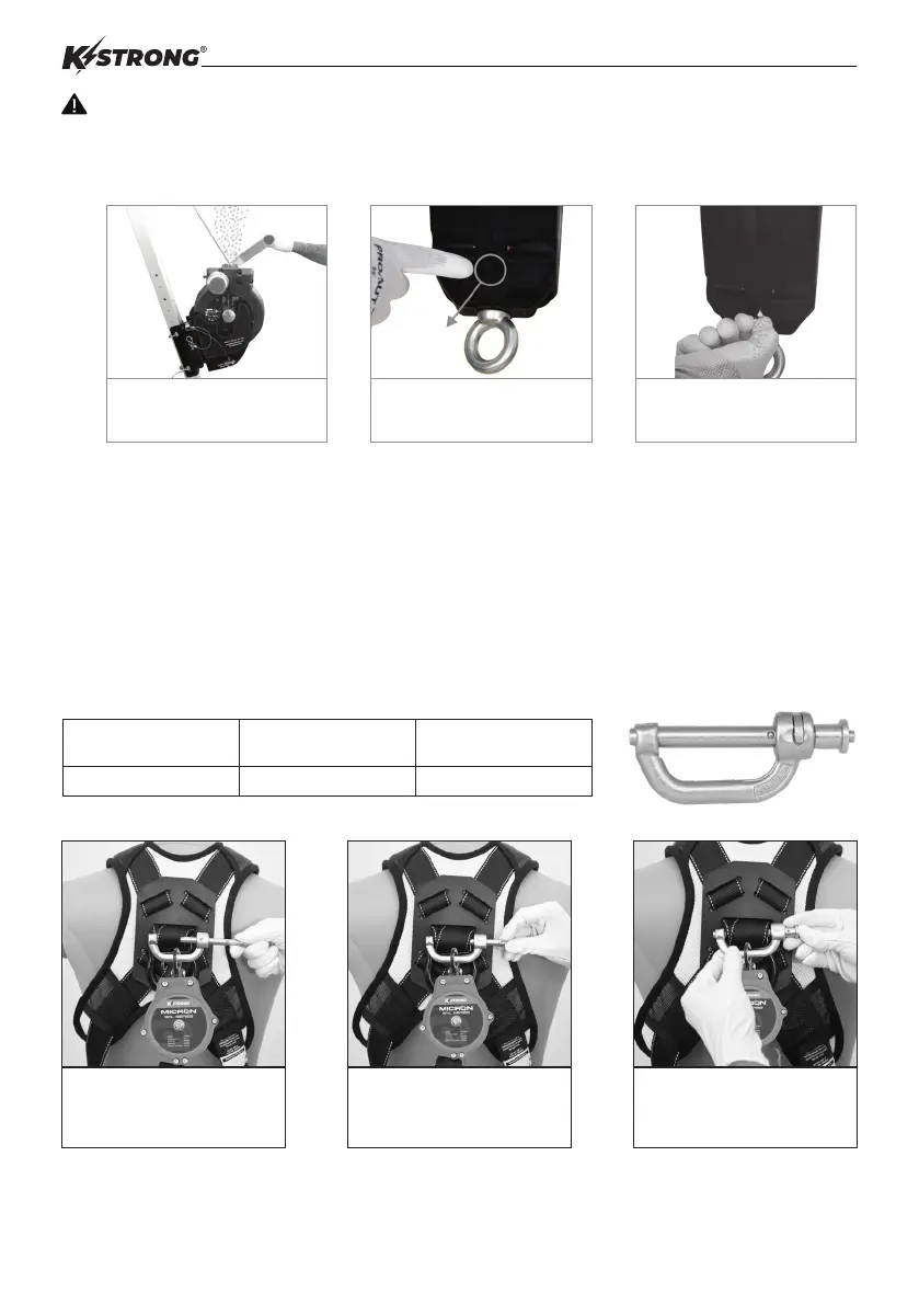 the help of a connector/ carabiner conforming to ANSI Z359.12-2009, which is compatible with the SRL subsystem, and ensure that