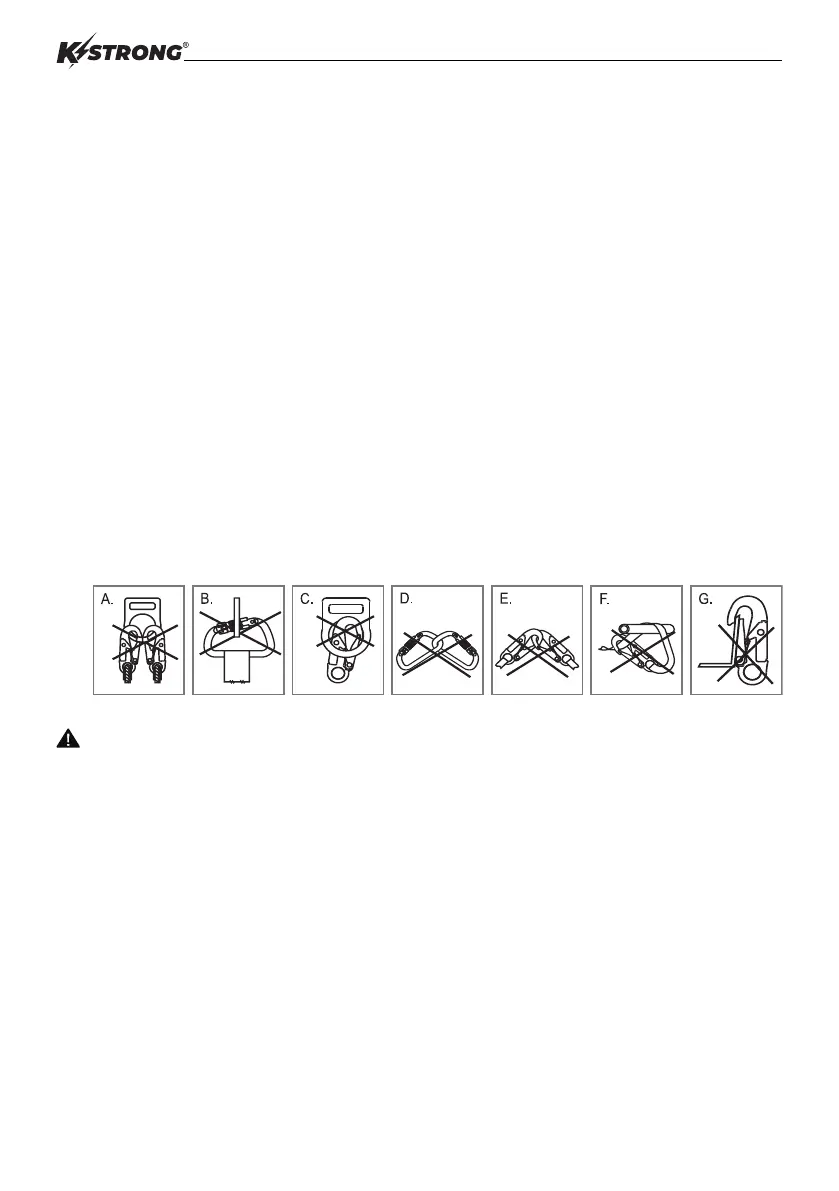 • While using KStrong snap hooks and carabiners, they should not be connected as below: