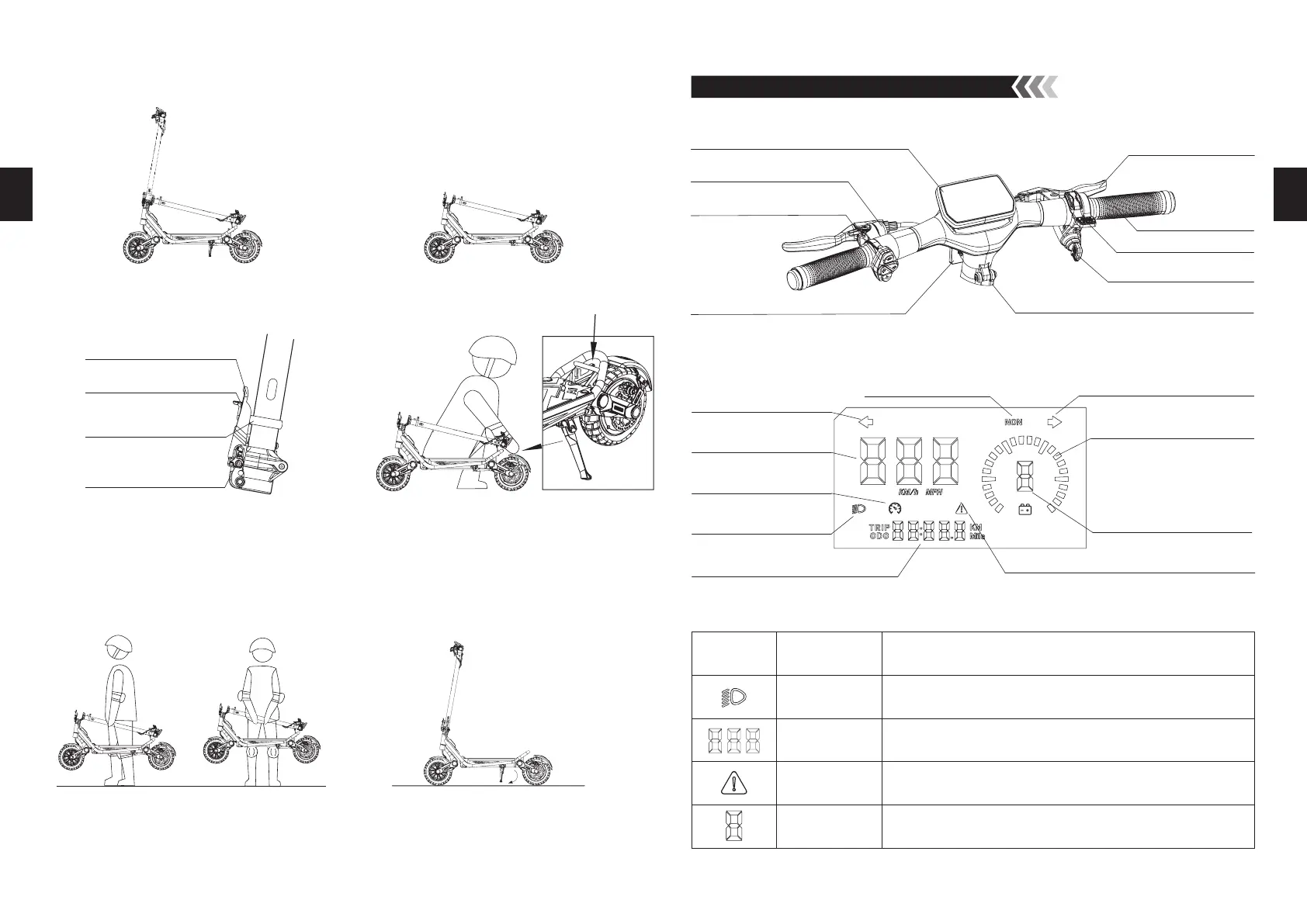1.Soulevez le véhicule avec une ou deux mains. 2.Après conduite, déployez la béquille et