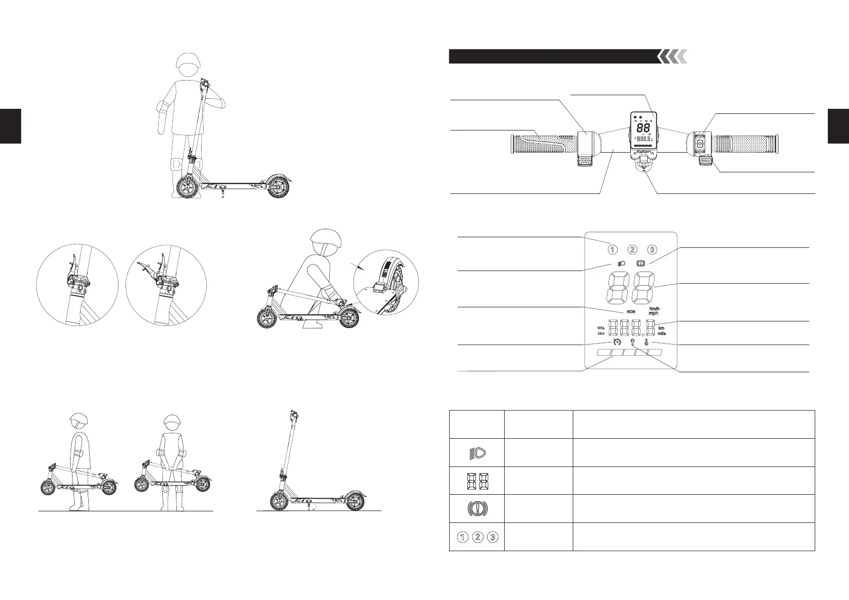 1.Soulevez le véhicule avec une ou deux mains. 2.Après conduite, déployez la béquille et