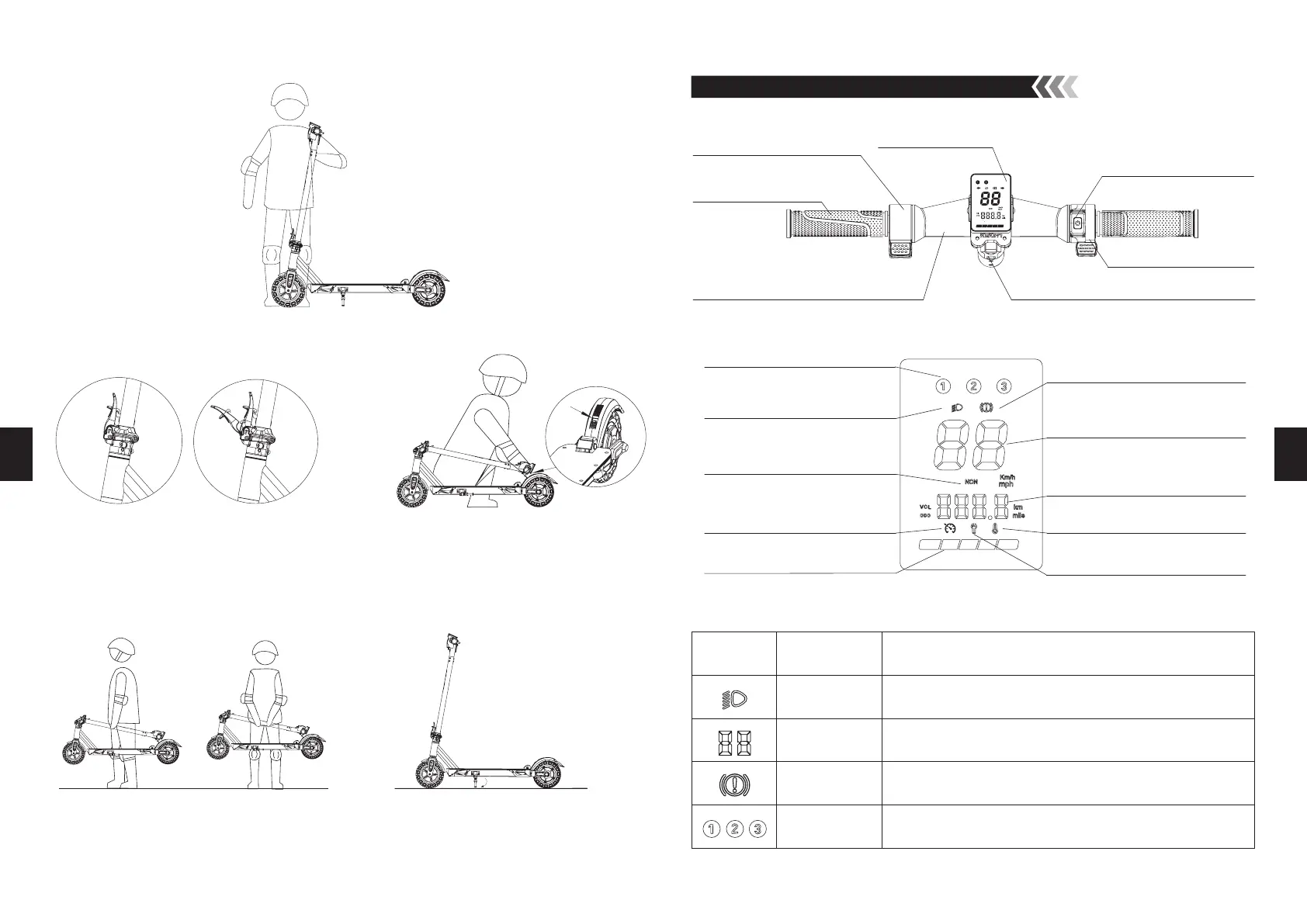 1.Levante el vehículo con una o ambas manos. 2.Después de utilizar el vehículo, abra los