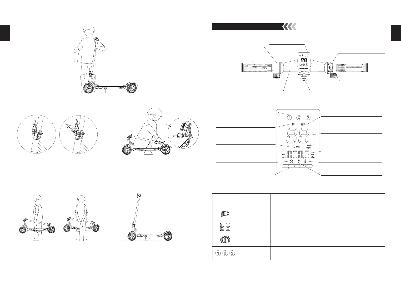 1.Lift the scooter with one or both hands. 2.After riding the scooter, please release the