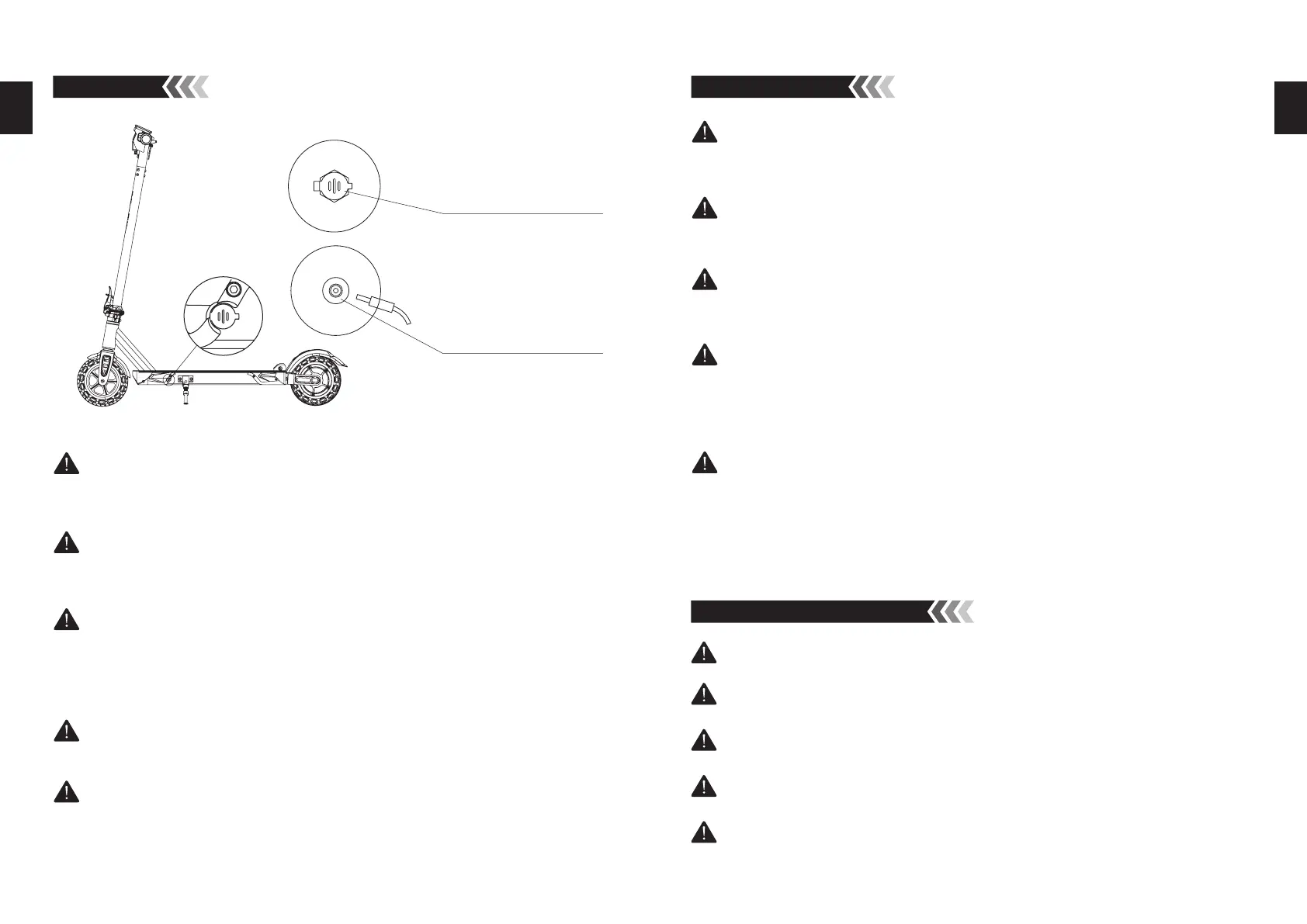 Keep the e-scooter well balanced during its starting and stopping process, and pay attention to both