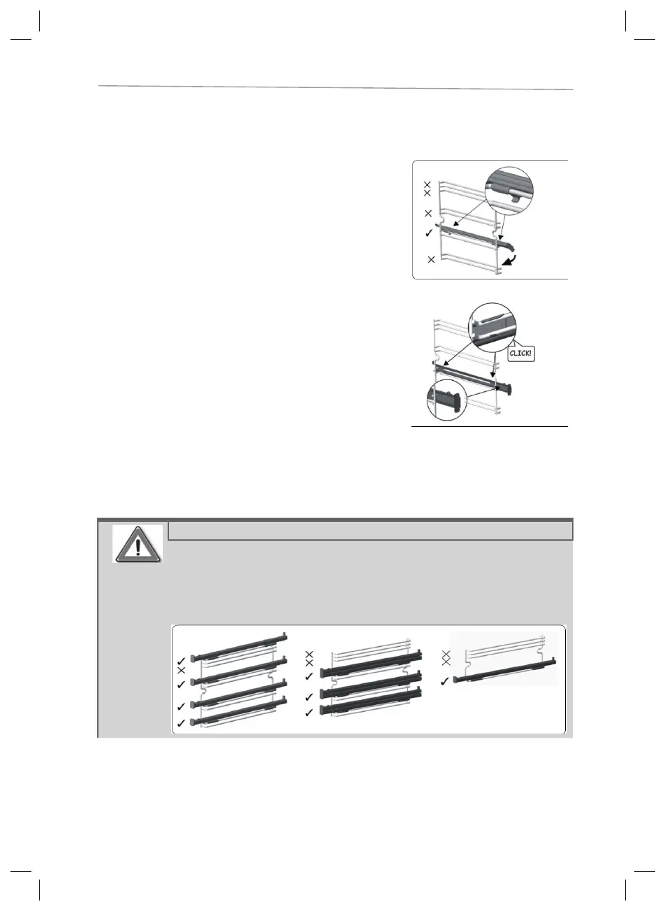 ner until it hooks on the small clips on the lower rail.