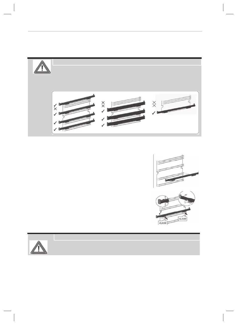 The double extraction shelves must be placed at heights 1, 2, 3 and 3 starting from below.
