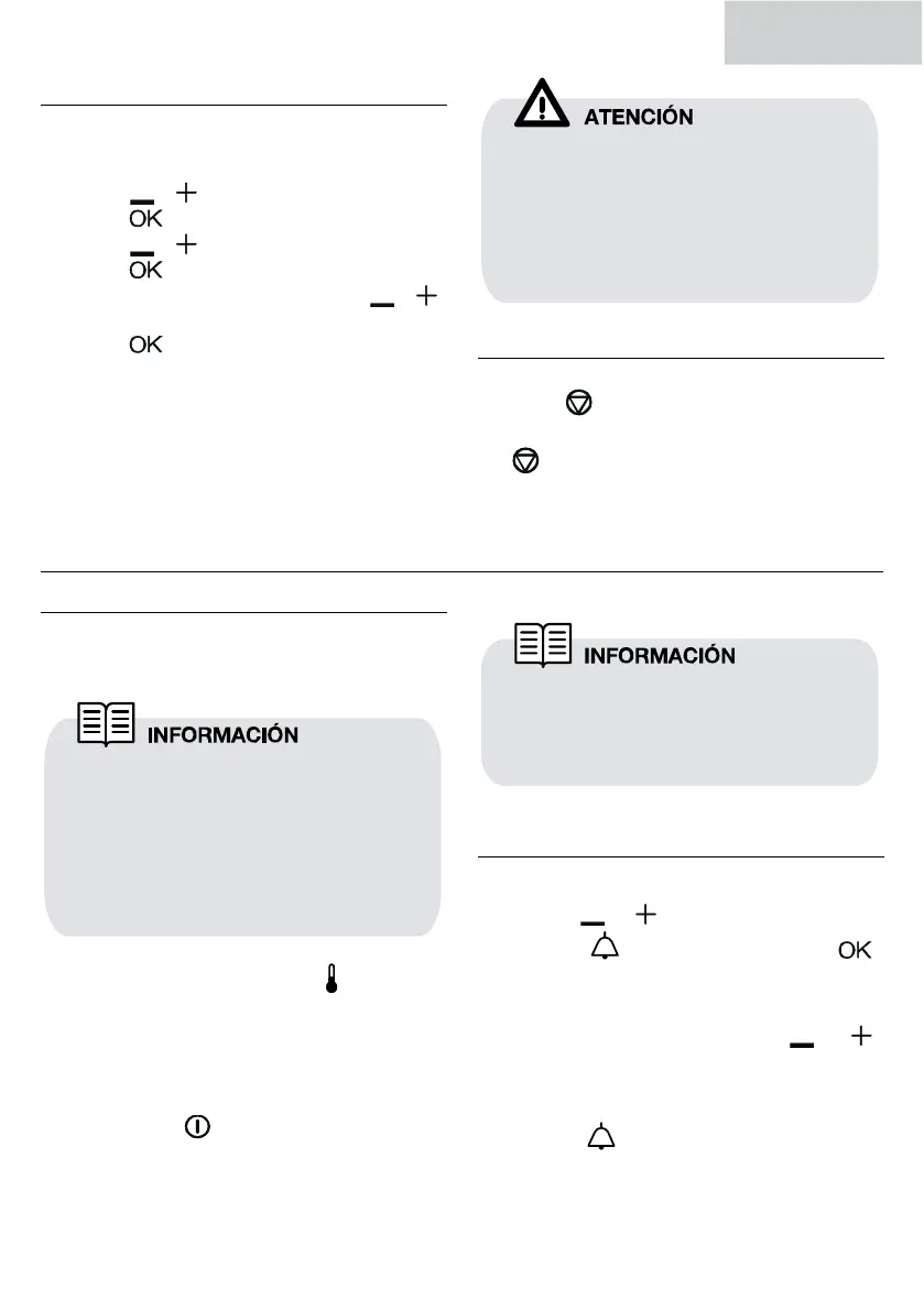 Pulse o para ajustar los minutos.
