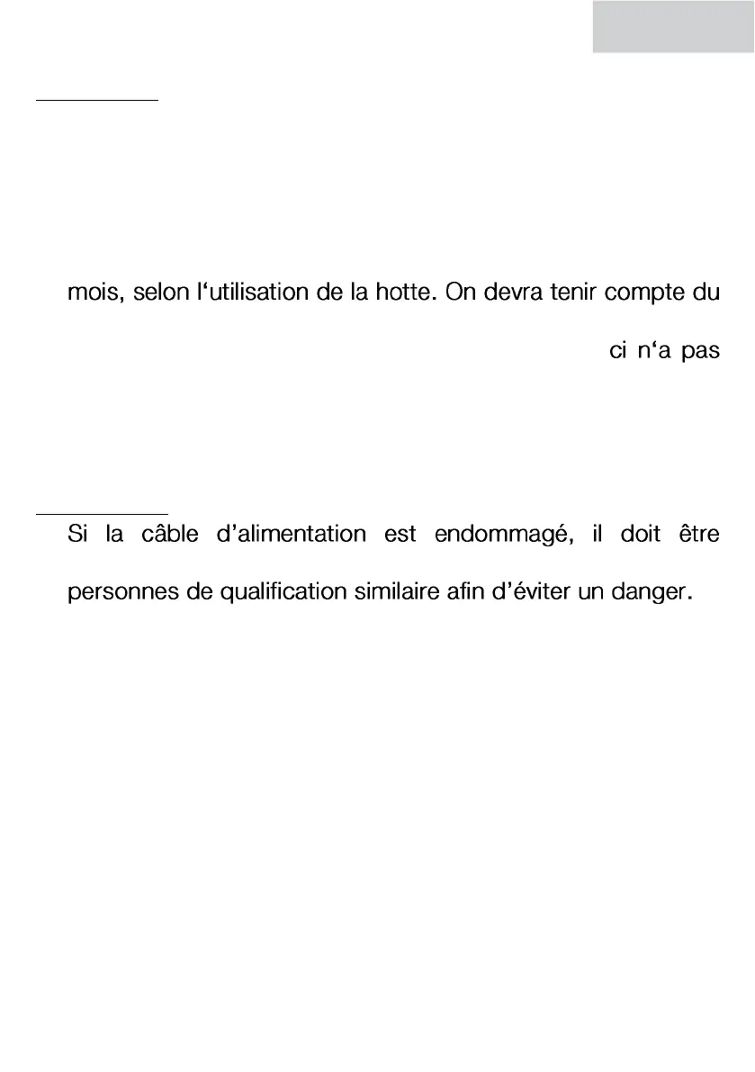 la hotte et tout spécialement sur le filtre. CELA POURRAIT