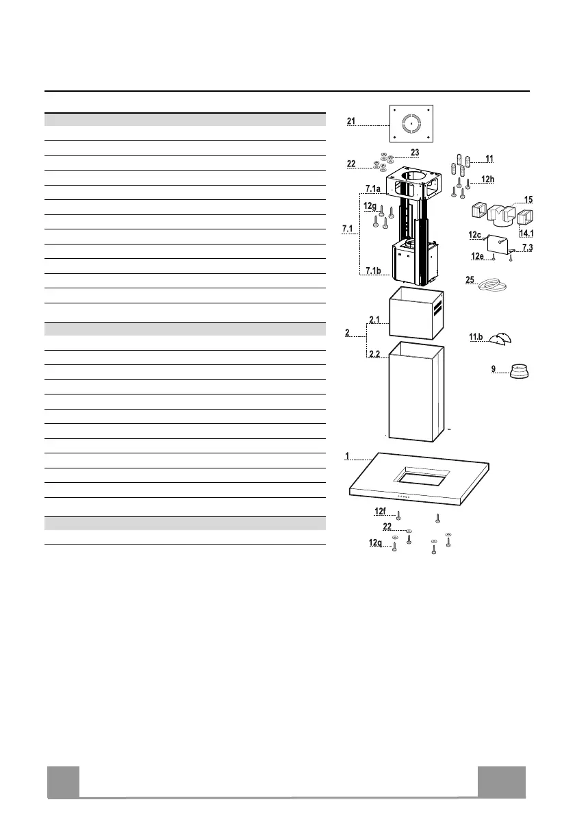1 1 Corps Hotte équipé de: Comandes, Lumière, Filtres