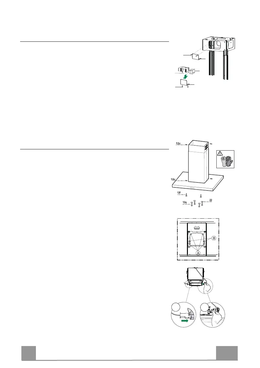 • Sollevare il Corpo Cappa e incastrare le Viti 12f sulle asole