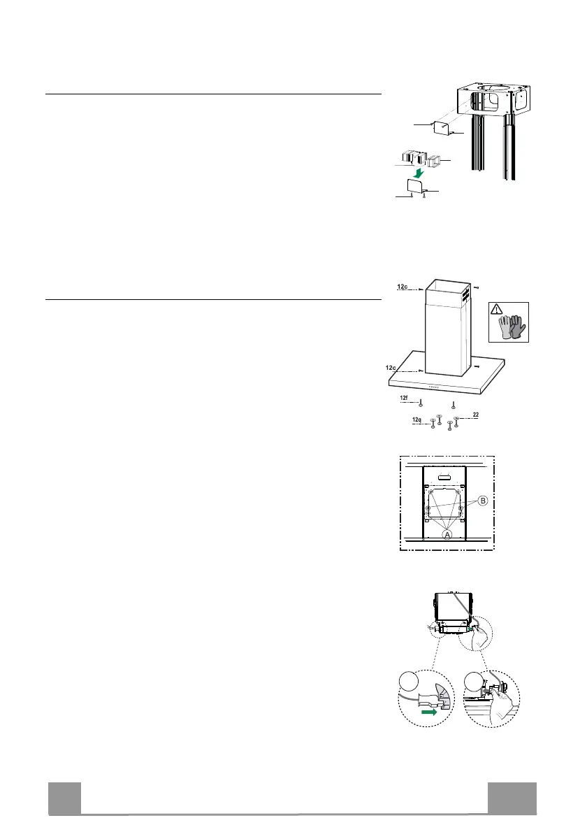• Levantar el cuerpo de la campana y encastrar los tornillos 12f (ref. A) hasta el