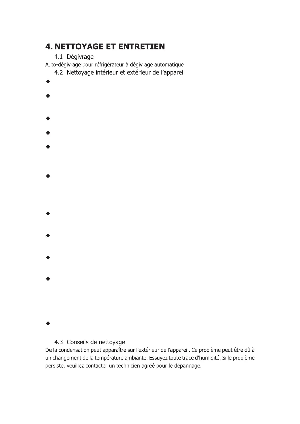 Ne pas uliser de brosses dures, d’ustensiles de neoyage en acier, de brosses