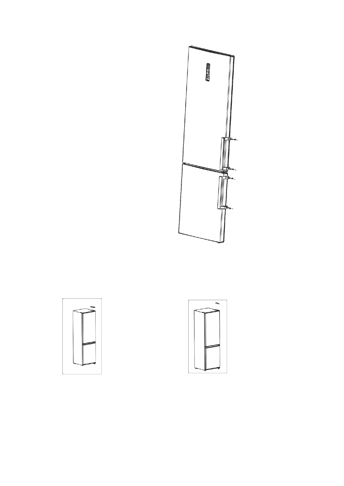 1) Retire o protetor da dobradiça. 2) Retire a dobradiça superior.