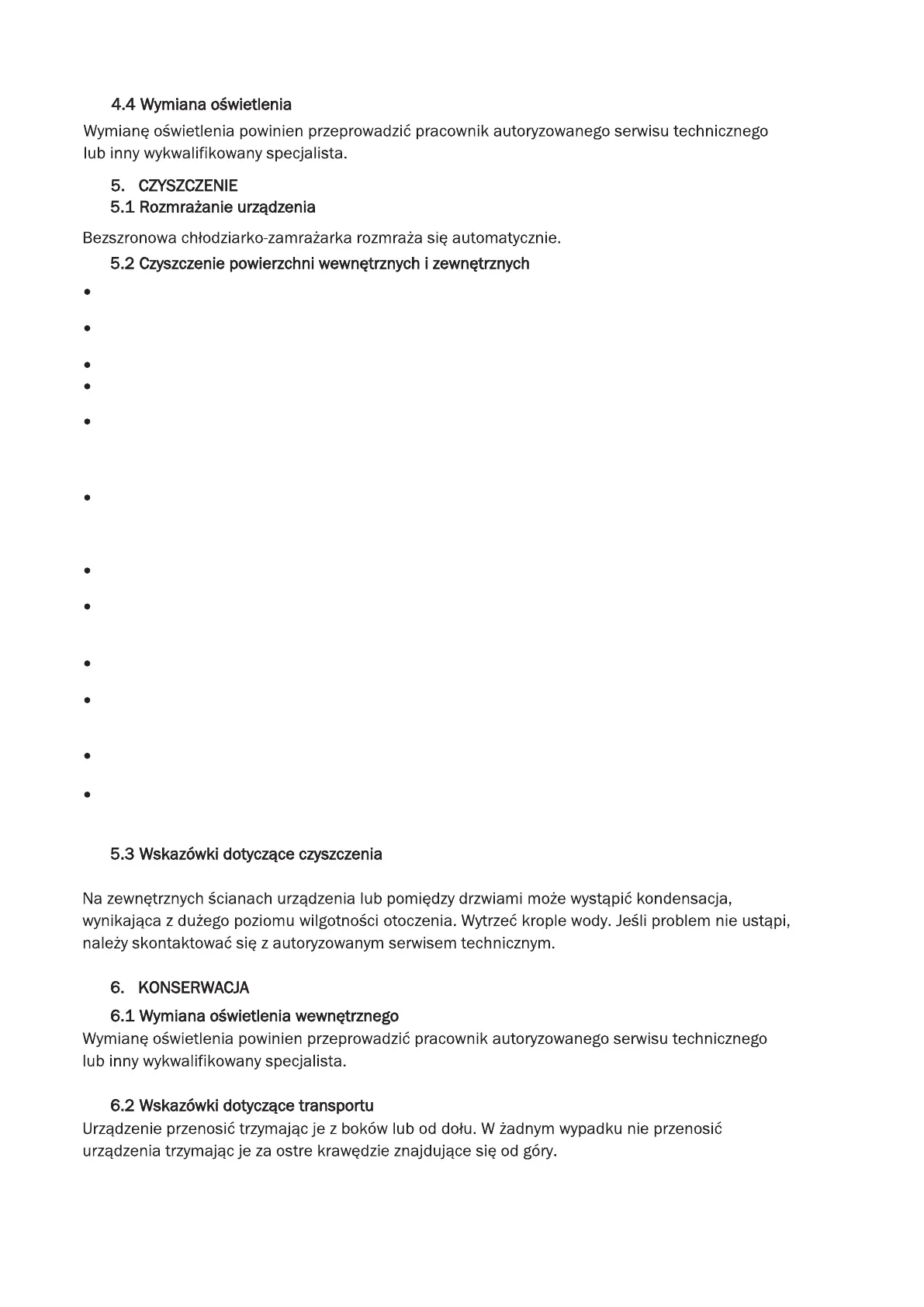 miękką szmatką. Przed ponownym uruchomieniem pozostawić otwarte drzwi, by wnętrze wyschło w