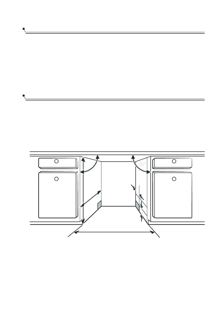 1. Less than 5 mm between the top of dishwasher and cabinet and the outer door