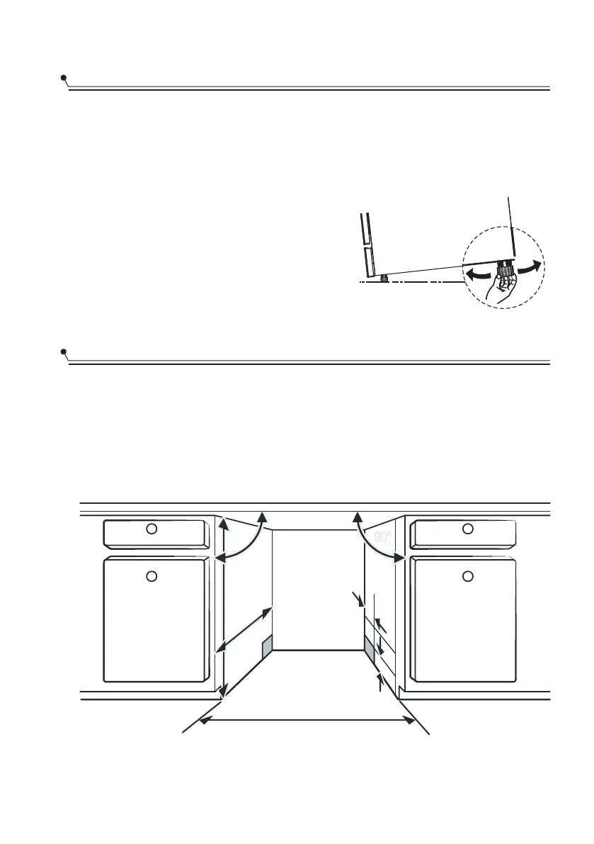 1. Less than 5 mm between the top of dishwasher and cabinet and the outer door
