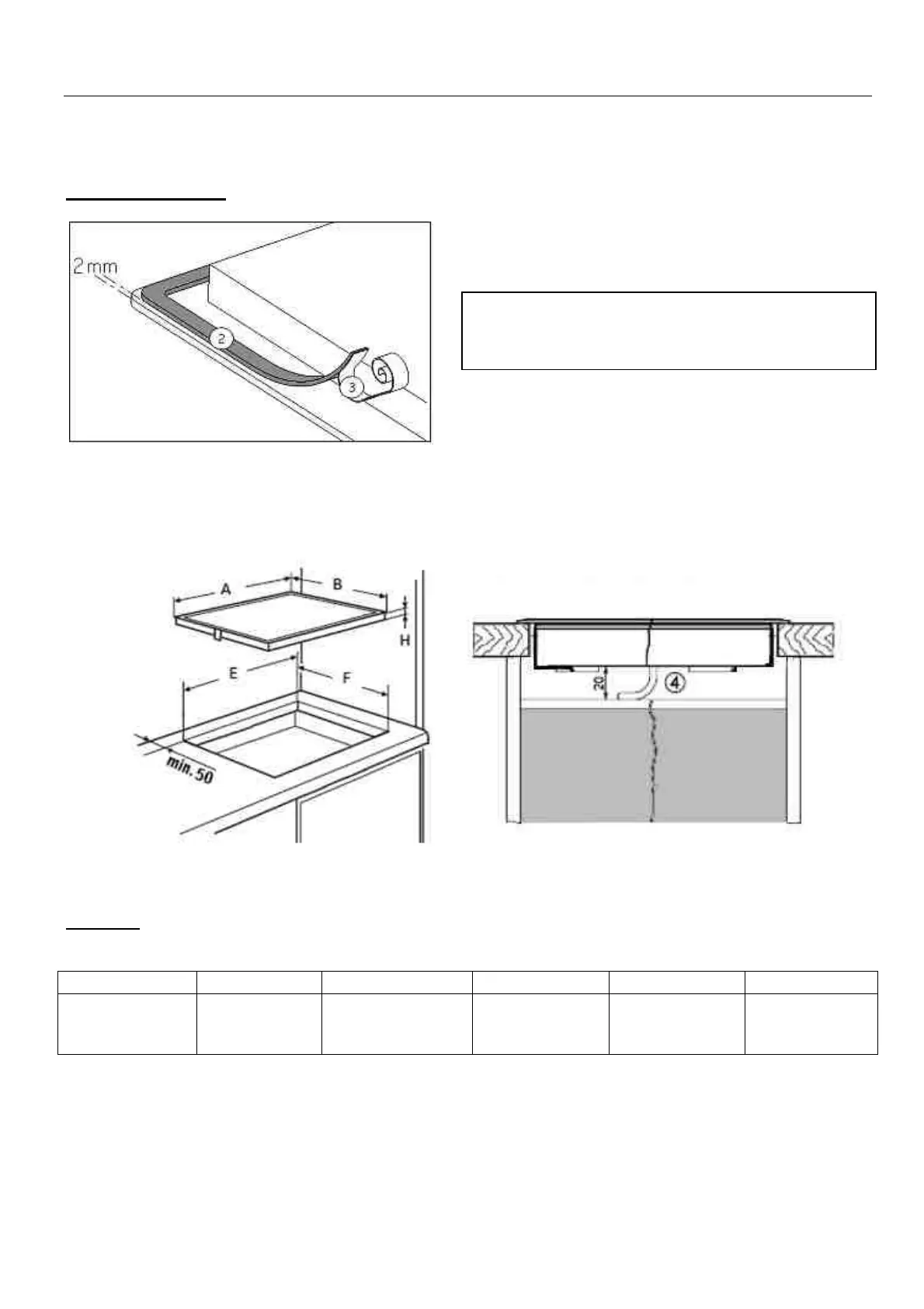 • Der Abstand vom Ausschnitt bis zu einer Mauer und/oder einem Möbelstück muss