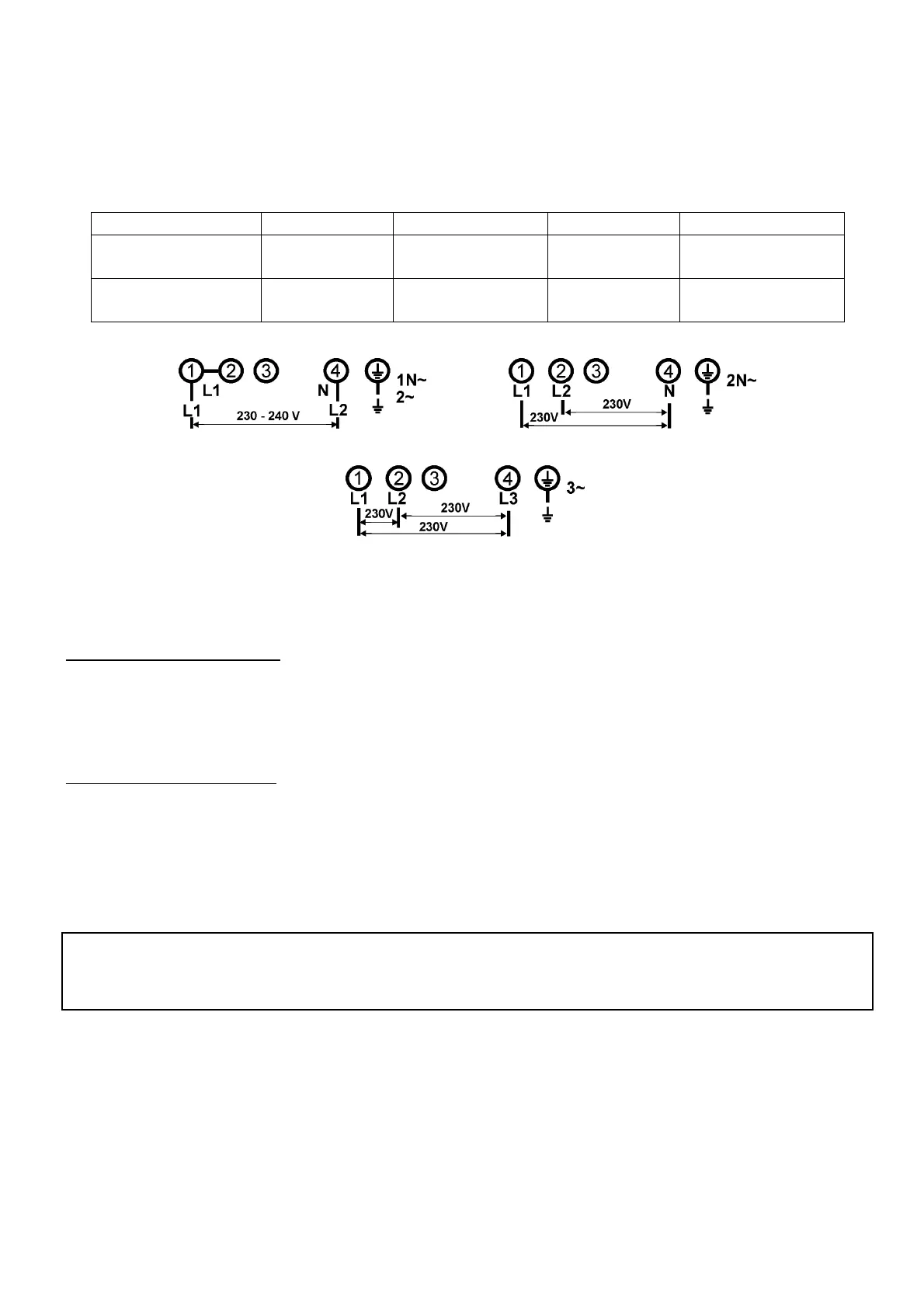 230V~ 50/60Hz 1 Phase + N 3 x 2.5 mm²