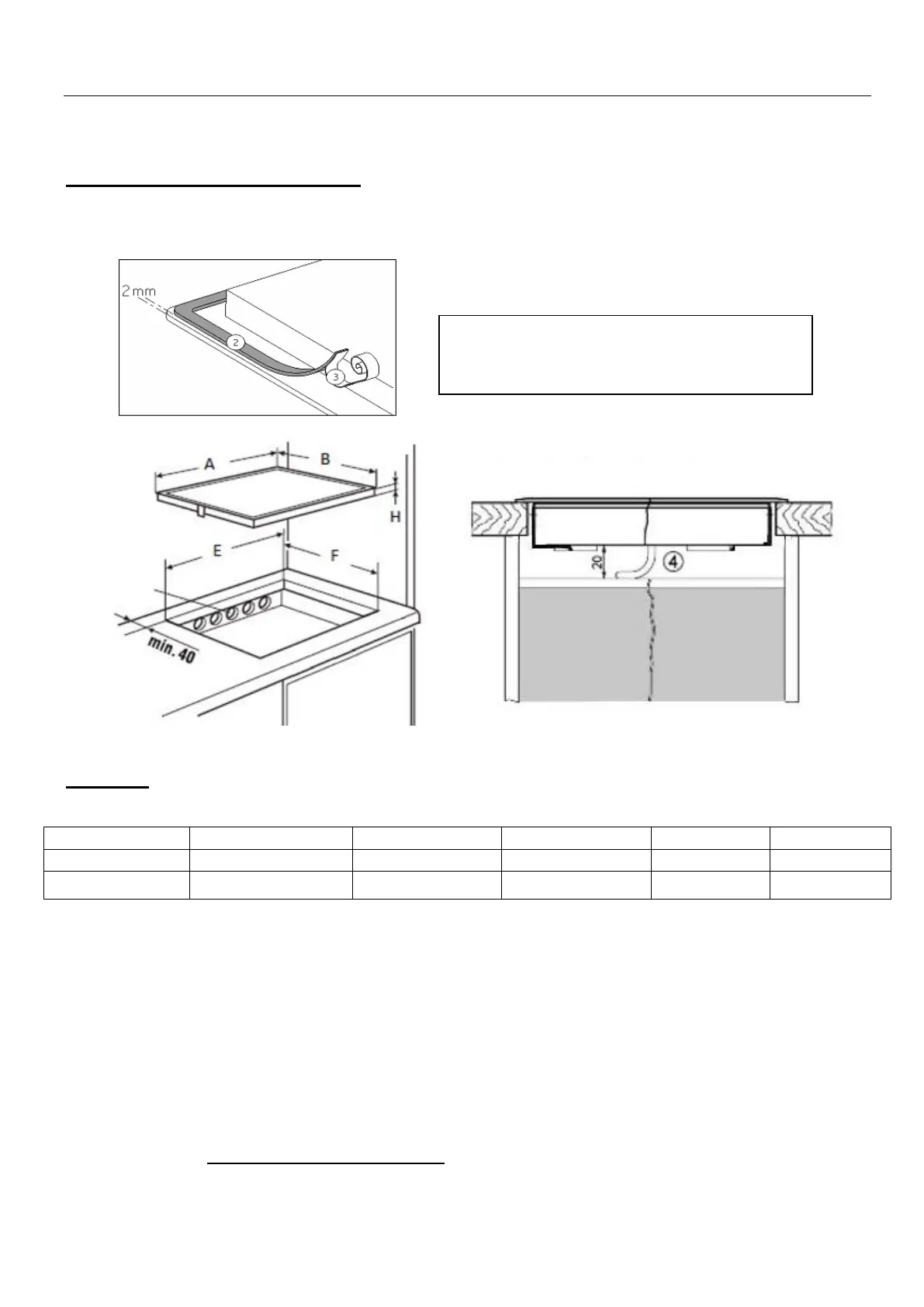 • Om een goede beluchting van de elektronica in de kookplaat te verzekeren moet onder de