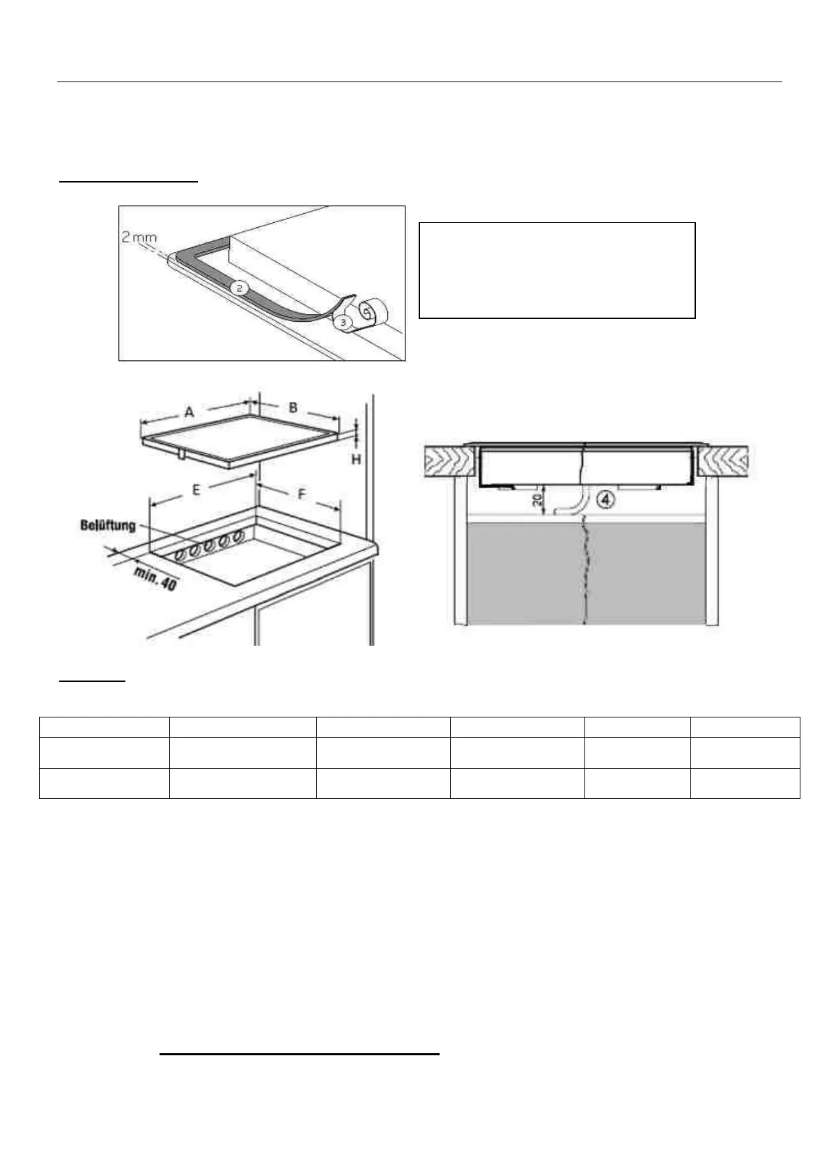 • Um eine ausreichende Belüftung der Elektronik im Kochfeld zu erzielen, ist unter der