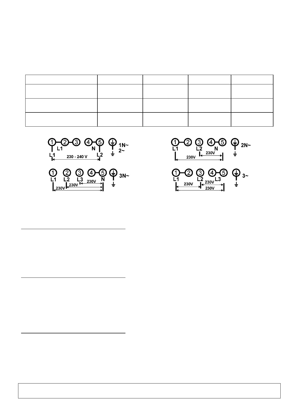 230 V~ 50/60 Hz 1 Phase + N 3 x 4 mm²