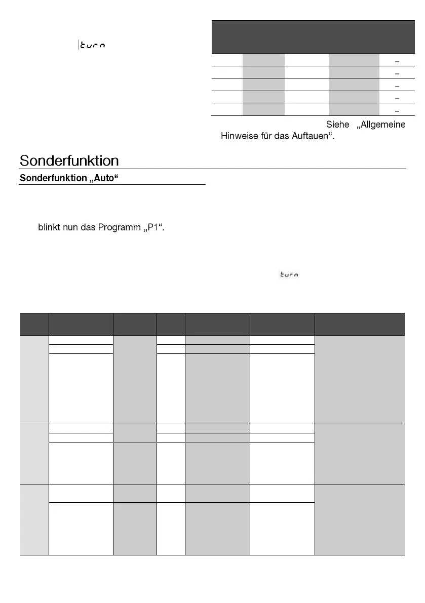 der Funktion Auftauen nach Gewicht unter