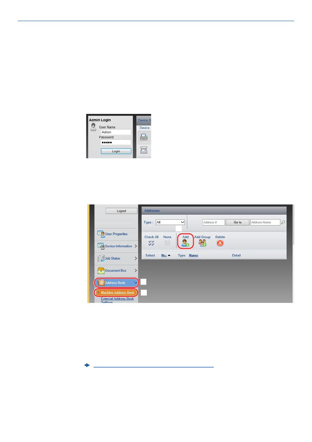 The factory default setting for the default user with administrator privileges is shown below. (Upper