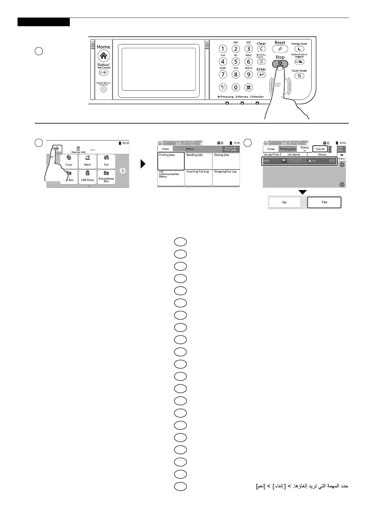 Select the job you wish to cancel > [Cancel] > [Yes]