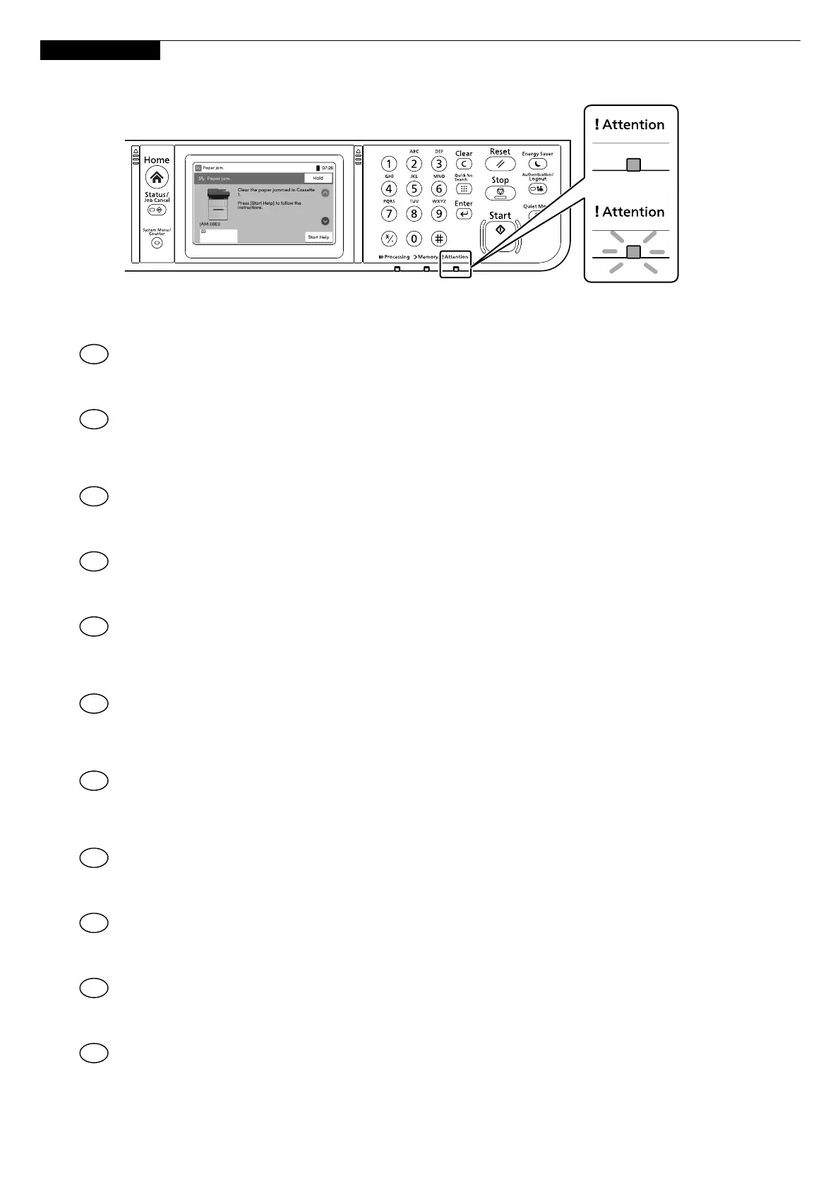 If an error occurs on the machine, the error message appears on the screen. Also the Attention