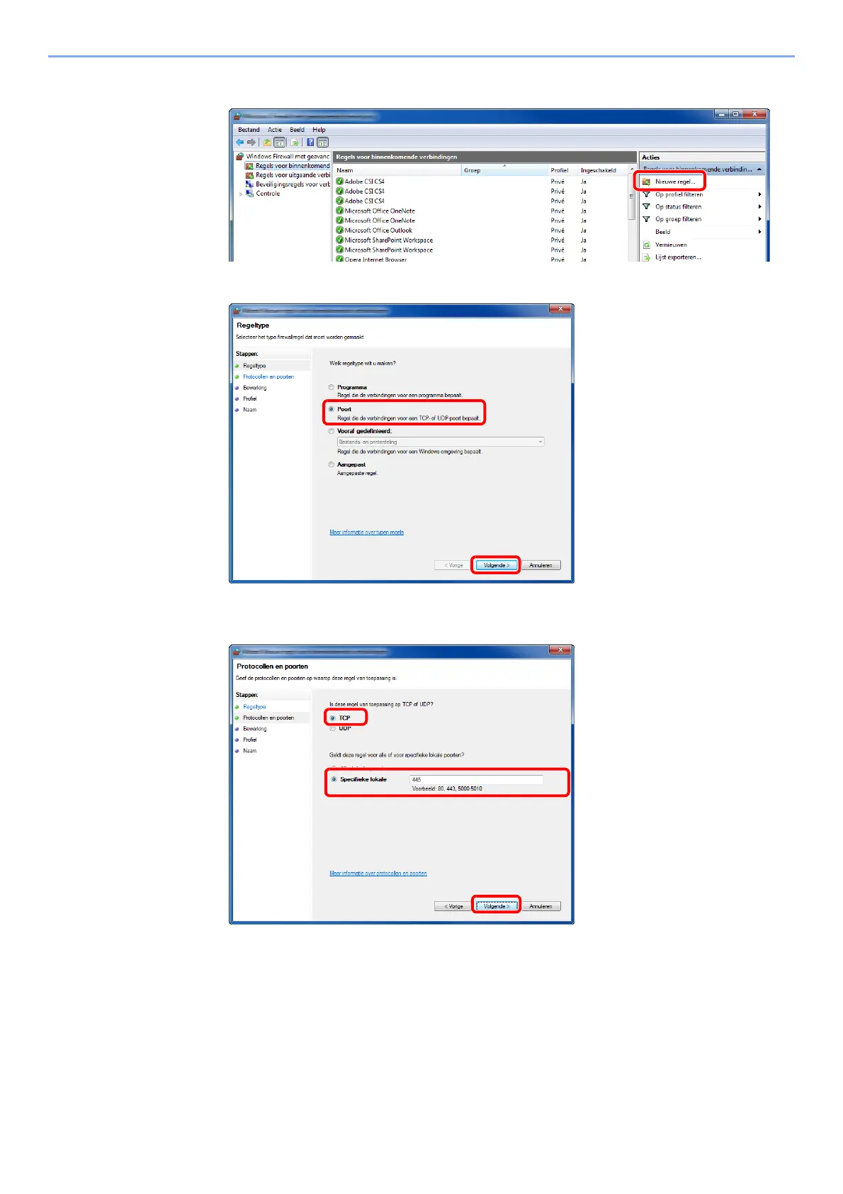 6 Kies [TCP] als de poort waarvoor de regel geldt. Selecteer vervolgens [Specifieke lokale