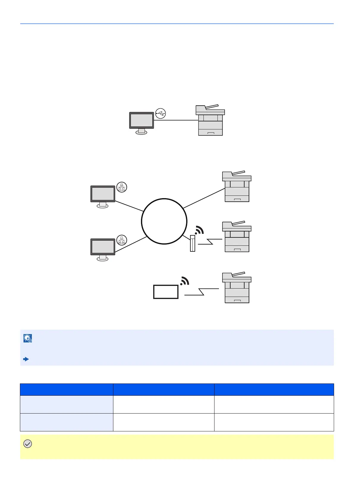 Bij aansluiting van de machine op de pc of tablet via netwerkkabel, Wi-Fi of Wi-Fi Direct