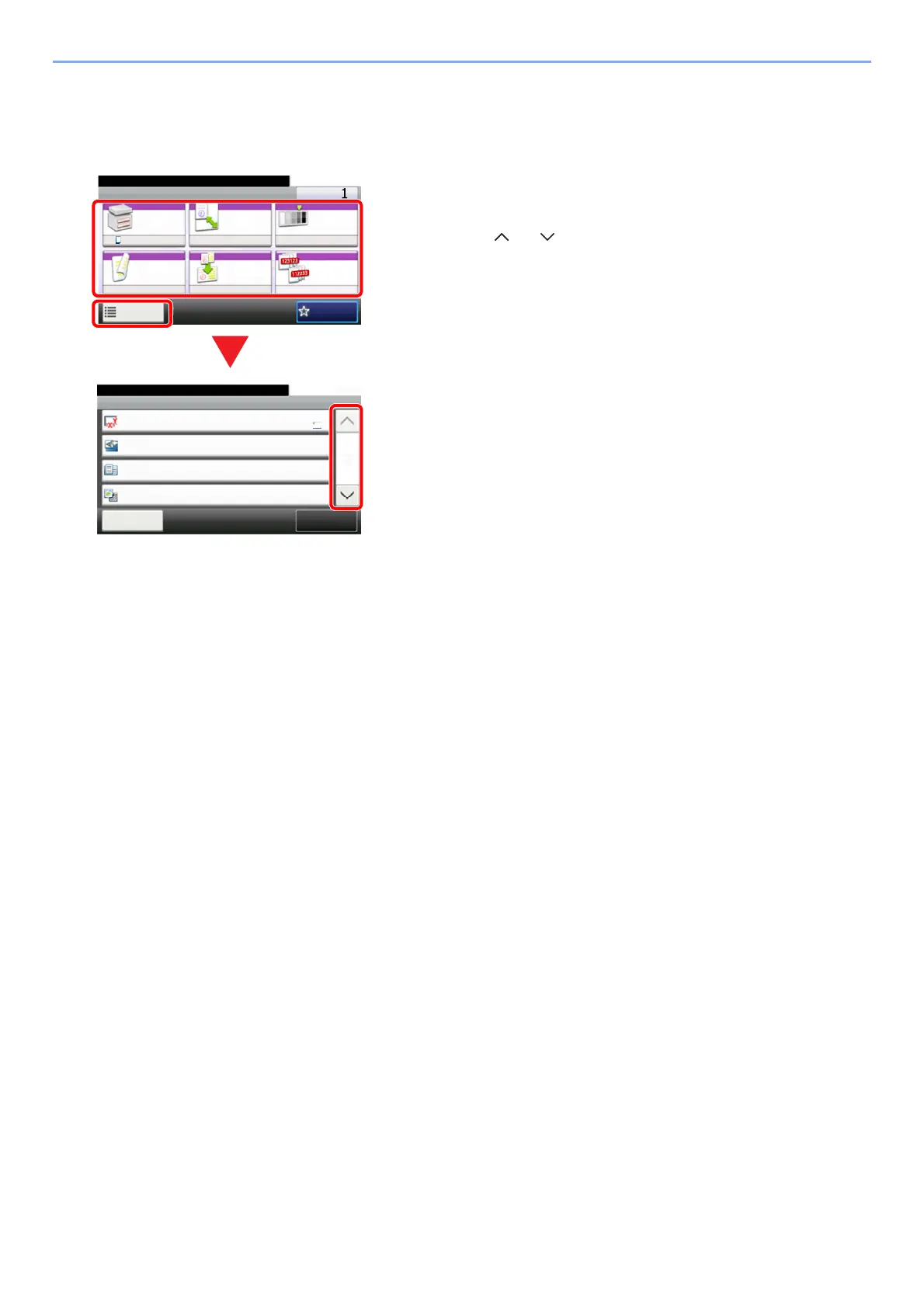 3 Druk op [ ] of [ ] om naar boven of naar beneden te