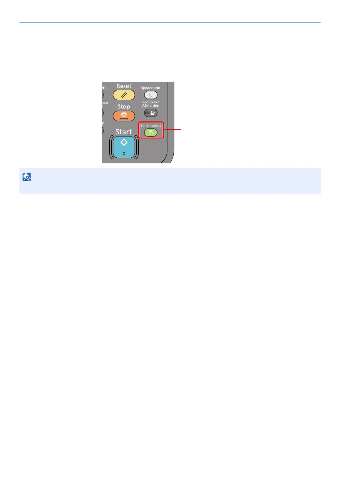 Door op de toets [Stille Modus] te drukken, gaat de toets [Stille Modus] knipperen en wordt de Stille Modus