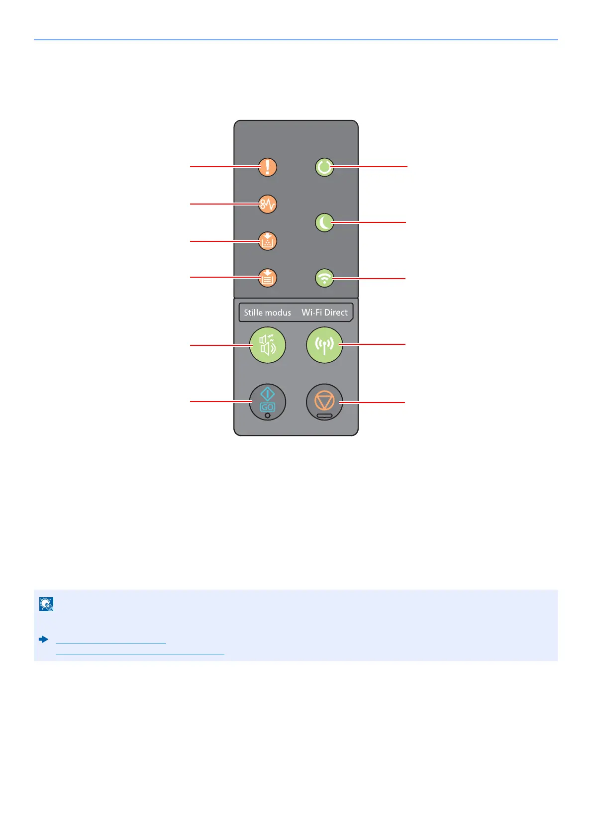 Voor de betekenissen van de lampjes en functies van de toetsen, raadpleeg: